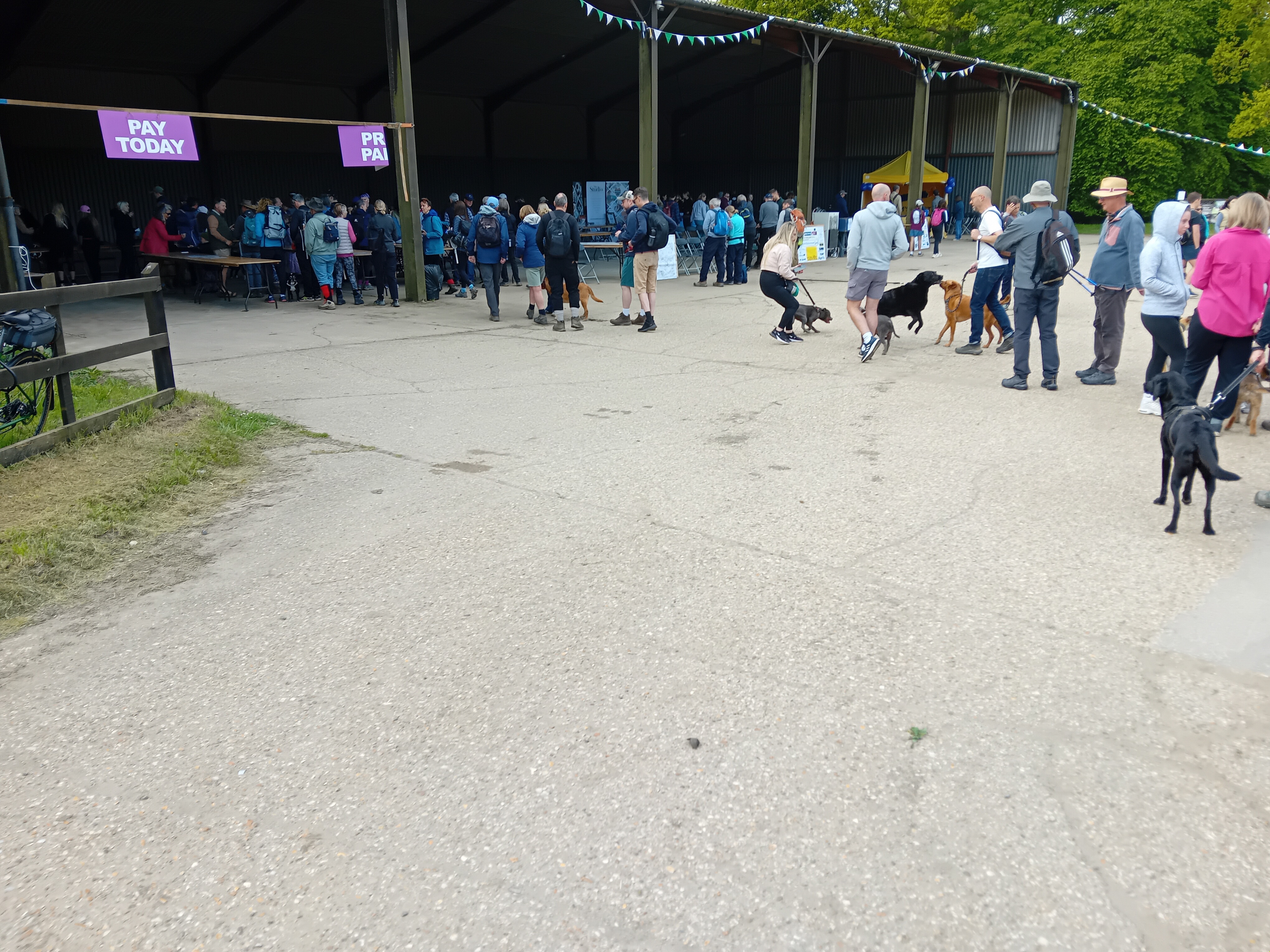 Having reached the start the next thing was to check in. Having pre-paid this was very quick. In the queue was a collection of assorted dogs with owners. The breeds ranged from wire haired terriers to collie dogs to bouncy spaniels. All in fine voice.