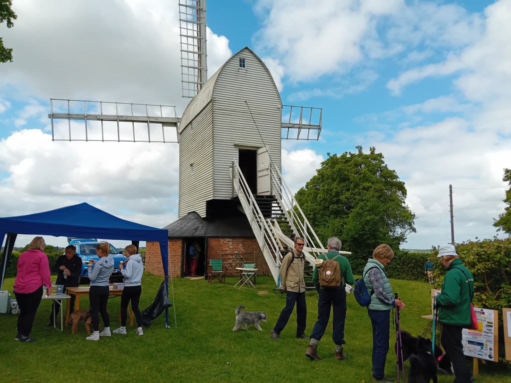 Having already walked 2 miles to the start I changed my plan and did the 6 mile Challenge instead. A short bus ride in the Barnardiston Preparatory School Bus to Shudy Camp. This allowed an appreciation of the tri-point of the border of Cambridgeshire, Suffolk and Essex. There are hills. Also there are Windmills.